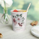 Beautiful botanical paper cup featuring romantic pink, white and cinnamon rose/ chianti flowers with green leaves .