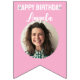 personalized 40th birthday bunting for her in pink and white. This 40th birthday banner is the perfect party banner for her 40th birthday party. you can customize the name, age and photo for a custom bunting.