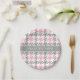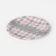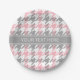 Pink White Dk Grey Houndstooth Name Monogram Paper Plate