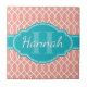 Pink White Elegant Lattice Pattern Teal Monogram Tile