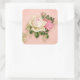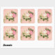 Stickers with a floral rose bouquet with white and pink flowers. Background is pink with a floral pattern. Pretty and elegant design.