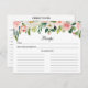 Watercolor Pink and White Floral Recipe Card for Bridal Shower or Baby Shower