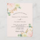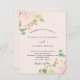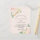 A light and airy rose gold background. Decorated with watercolored flowers, florals pink roses, white orchids and a yellow gerbera, eucalyptus greenery and faux gold sprigs. Personalize and add your names and wedding details. Black coloured letters.