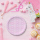 Pink-white gingham bow pattern paper plate