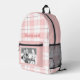 Pink White Gingham Plaid Pattern Name and Photo Printed Backpack