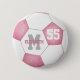 This cute soccer button for girls features a traditional style soccer ball with pink and white panels - the pink panels have a digitally created texture - customize the player's name, monogram and jersey number - by katz_d_zynes | see more girls soccer gifts >>> https://www.zazzle.com/store/katz_d_zynes/products?cg=196901312156083158 | boys soccer gifts >>> https://www.zazzle.com/store/katz_d_zynes/products?cg=196471975604901561