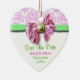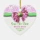 This beautiful, “save the date "heart shaped" ornament, with customizable templates, is a unique and ideal invitation for your guests to remind them to rsvp in time for your special day. DESIGN - An elegant pink, FAUX satin bow with a green and gold gemstone, is set against a ribbon which is surrounded by a white damask pattern. PERSONALIZE IT - Use the "customize it" button to change the size / style and colour of the font, and to move, add or delete templates. MATCHING RANGE - Scroll down to see the full range of items in this exclusive range. CUSTOM REQUESTS - For assistance, colour changes or custom designs, contact me on clientrequestrw@gmail.com
