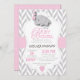 Pink, White Grey Elephant 🐘 Baby Shower Invitation