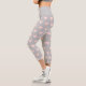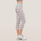 Modern pink and white heart pattern and editable pink text on silver grey Capri Leggings. Text in pink and white can be personalized