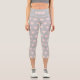 Pink White Heart Pattern & Text on Silver Grey Capri Leggings