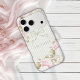 Beautiful sage green watercolor ribbon frame surrounding lovely fonts and scripts done in coordinating colors iphone case. Pink & white hydrangeas surround lovely font for your name. A soft sage green and white sweet coordinated stripe background. A perfect case for your phone. Other sizes available.