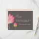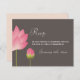Ensure a timely response to your big day with these easy to use wedding response cards. Card features graceful lotus blossoms with your RSVP date highlighted with festive font. Customize the card with your personal message, rsvp date, attendance wording and food choices. These deluxe rsvp cards are 4.25"x 5.5" in size--there is plenty of room for customized text. Each card comes with its own envelope.