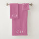 Pink white monogram initials minimalist bath towel set