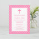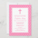 Pink White Polka Dot Cross Baptism Christening Invitation