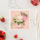 Birthday napkins with a floral rose bouquet with white and pink flowers. Background is pink with a floral pattern. Pretty and elegant design.