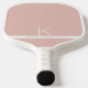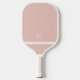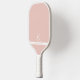 Modern and simple understated muted blush pink and white monogram initial design on a personalized pickleball paddle in a classic minimal, professional-looking thin sans-serif font for your name letter, and optional contact information or phone number.