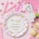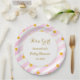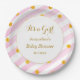 Pink White Stripes Baby Shower Paper Plates with Pink, White Stripes and Yellow Gold Dots Pattern.