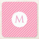 Pink White Stripes Trendy Monogram Modern Template Square Paper Coaster