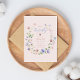 Celebrate the upcoming arrival of the newest addition to your family with this sweet baby shower invitation template, featuring lilac and pink hand-painted watercolor wildflower florals and pastel green and blue hued butterflies, against a pastel blush pink background. Cute invitation saying "A little butterfly is on her way." Personalize this product with your own party details and information. The front of this card is decorated with a natural, organic arrangement of delicate wildflowers, pansies, clover and botanical greenery creating a circular frame shape. Inside the frame, "a little" appears in curved text to match the border, and "butterfly" is written in rose calligraphy, underneath, the phrase finishes with "is on her way!" A little butterfly is on her way! There is a mauve butterfly separating the two sections of the text. The mom's name, the baby's name, and the rest of the event details are displayed in a classic serif layout, with the date in rose hued script lettering. The back of the card has a single beautiful watercolor green butterfly among wildflowers. Perfect for spring, summer, or country, boho, garden, and floral themes. To get started changing names and event details, click on "Personalize this template" and edit the wording in the template boxes. To access the more advanced editing tools, scroll down to "Click to customize further". Once you are in Zazzle's design tool, you can edit fonts, placement, colour, sizing, and more! All text can be edited. Congratulations on your new arrival!