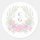 Pink Wildflower Crest Wreath Wedding Classic Round Sticker