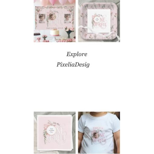Pink Little Miss Onederland Wildflower Themed Designed by Pixelia Designs