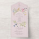 Pink Wildflower Rustic Boho Wedding All In One Invitation