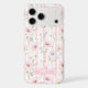 Make a statement with this iphone 17 pro max phone case that is so elegant and pretty! It's modern yet trendy with a delicate blush pink wildflower floral garden pattern with wispy botanical greenery on a soft blush pink striped background and your name in a CAP font in white inside a beautiful pink box that allows your name to pop. It will go with everything and look fabulous on your phone!