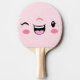 Cute and fun Pink Winking Kawaii Face Ping Pong Paddle. Great for kids and adults.