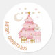 Pink winter holiday candy cotton bear classic round sticker
