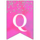 Glam Quinceañera pennant bunting done in a hot pink marbled look with silver glitter look and silver tone crowns. White text reads Quinceañera.