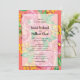 Beautiful abstract watercolor pink flowers with yellow buds and green leaves with your wedding ceremony details in chic lettering on a transparent white layer. MATCHING items in our collection.