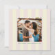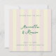 Send modern and on-trend save the date cards with coastal Italy vibes and butter yellow and pale shell pink vertical cabana style stripes. This sleek and chic dark green text is easy to personalize with the basic future wedding details like the couple's names, wedding date, location, and wedding website plus a simple square enfacement photo. This mixes modern sans serif type with a hand-written style script for an elevated but still casual vibe, while the square shape feels unique and upscale.