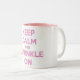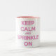 A good pink Zebra home fragrances moto. Just Keep calm and Sprinkle on reminding us to keep our head up. it's a white coffee cup with a light pink on the inside and the moto on the outside