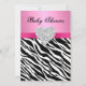 Pink Zebra Diamond Heart Baby Shower Invitation