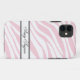 Stylish et girly zebra imprimer iPhone 5 coque conçu avec un motif de bandes zèbres rose et blanc, et personnalisé avec votre nom ou texte personnalisé.