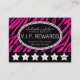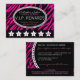Simply chic zebra print business loyalty card featuring 6 punches, with reward after 5 visits. This card is set up for Free Service of customer's choice after 5 visits, but can be easily edited with your own rewards program info. Perfect for a hairdresser, hair salon, spa, boutique or supply shop. {{Click "CUSTOMIZE" to change background colour, text colour, font and for more editing options. Need specific colours, design or help with layout? Drop me a line at mel@creativemel.com - I'd love to help!}}