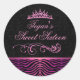 Pink Zebra Print Sweet 16 Envelope Sticker/seal Classic Round Sticker