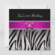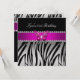Pink Zebra Silver Black Butterfly Birthday Party Invitation