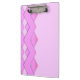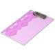 This is a fantastic clip board for a business. Designed to include your text on the back for advertising reasons. It has a unique pink colour that is solid on the side where papers are clipped and has a modern zigzag or weave design on the back.