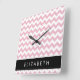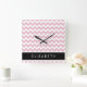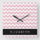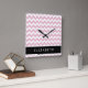 Pink Zigzag, Pink Chevron, Wave Pattern, Your Name Square Wall Clock