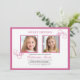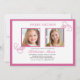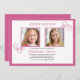 Oh how the time flies! This pretty two-photo invitation allows you to feature a photo from yesteryear and a current photo. The white background has two hot-pink flourish and is framed in hot pink. The card is easy to customize with your wording, font, font colour and choice of six paper types.