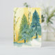 Une aquarelle peinte à la main de pins dans un coucher de soleil brillant inspiré de la péninsule supérieure des forêts du Michigan.
