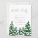 Bébé il fait froid à l'extérieur 🌲 Nos invitations do-it-yourself douche d'hiver pour bébé sont la meilleure façon de célébrer le nouveau bébé en chemin avec un baby shower à thème hivernal. Pour la maman qui aime l'hiver, ces invitations de baby showers de forêt d'hiver sont le choix idéal pour un baby shower de décembre ou janvier. Le design invitation du baby shower d'hiver KEIFER comprend une ligne d'aquarelle de pins verts recouverte de neige dans une forêt hivernale, associée à l'expression "bonjour bébé" en utilisant un script manuscrit fontin une forêt verte, avec les autres détails du baby shower d'hiver à thème des merveilles à l'ombre d'un vert ultra foncé pour ajouter un intérêt visuel à votre joyeuse petite invitation de baby shower. Cette invitation au baby shower d'hiver est le choix idéal pour un baby shower d'hiver.
