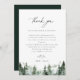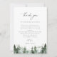 Elégante aquarelle forêt de pins, réception de mariage merci carte de table. Modèle fournit plusieurs lignes pour votre message de remerciement personnalisé. Caractéristiques, typographie noire sur la coordination des arrière - plans verts et blancs.