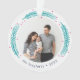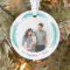 L'ornement photo Festive de Noël présente une photo préférée de chaque côté, entourée de bouges de pin et de baies dans des tons vifs et brillants de bijoux. Personnalisez avec votre légende personnalisée, illustrée avec votre nom de famille et l'année.