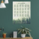 Cette belle carte de sièges mariages présente une image rustique d'une colline brumeuse ou brumeuse recouverte d'une forêt de pins verdoyante. Le titre dit "s'il vous plaît trouvez votre table" dans élégante calligraphie de script en dentelle. Il y a de la place pour les noms du couple et la date du mariage. Ce tableau a des affectations de table pour 240 invités 10 personnes par table. Idéal pour un mariage en plein air ou en montagne.