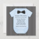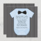 Adorable black pinstripe, bow tie black and blue baby shower invitation. This cute black and blue pinstripe baby shower invitation is easily customized for your event by adding your event details, font style, font size & colour, and wording.