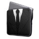 © Sunny Mars Designs - Pinstripe Suit: Black and Grey Laptop Sleeves - Cool custom laptop sleeves with a masculine man's business black and grey pin stripe suit, a black tie and buttons. Perfect for business men and women, people into men's fashion or any professional looking for something cool or a little edgy.
