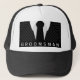 © Sunny Mars Designs - Pinstripe Suit: Black and Gray Groomsmen Trucker Hats - Custom wedding party attendant bachelor party groomsmen or groomsman hat or cap with a formal black and gray pinstripe suit, white shirt and black neck tie. Perfect gift for your best man, groomsman, usher, ring bearer or any male in your wedding party.