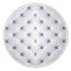 White pintucked fabric, dotted with gold beads. Has a tufted look and is elegant.